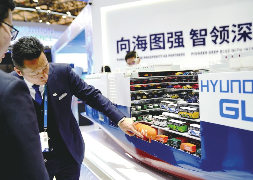 12月2日,在中国国际海事会展上,参展商介绍汽车运输船内部情况。12月2日,2025年中国国际海事技术学术会议和展览会(简称中国国际海事会展)在上海新国际博览中心开幕。本届会展以“创新与合作,共促海事业可持续发展”为主题,展览持续至5日,展览面积突破11万平方米,吸引全球16个国家和地区的超2200家企业参展。新华社记者张建松/摄