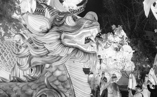 十二月三十日,市民游客在南京市秦淮区夫子庙大成殿景点参观各种灯彩。二○二六新年即将到来,南京市秦淮区夫子庙大成殿景点的灯彩灯组陆续点亮,为市民游客献上视觉盛宴。新华社记者李博/摄