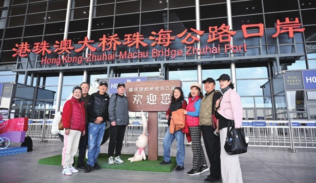 港珠澳大桥全长55公里,是世界最长的跨海大桥。2018年10月,大桥正式建成通车,香港到珠海、澳门的车程从3个小时缩短至约45分钟,大大缩短三地时空距离。随着“澳车北上”“港车北上”“粤车南下”等政策相继实施,大桥见证了粤港澳大湾区融合的加速度。图为1月6日,旅客在港珠澳大桥珠海公路口岸合影留念。