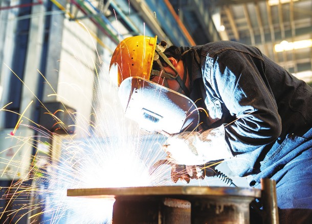 1月14日,在位于常德高新区的中联重科建筑起重机械有限责任公司,工人在生产塔式起重机零件。