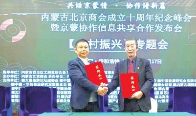 近日,以“共话京蒙情协作谱新篇”为主题的内蒙古北京商会成立十周年纪念峰会暨京蒙协作信息共享合作发布会,在内蒙古自治区呼和浩特市召开。