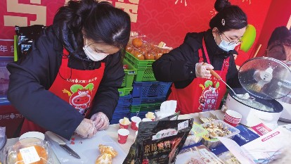 中华工商时报记者在年货集市现场看到,展示商品"老北京味儿"十足,既有来自紫光园、天福号等北京老字号的经典熟食、牛羊肉产品,还有联合非遗烹饪大师打造的快手菜--老北京炖吊子。现场试吃的饺子、蒸包、火锅等商品更是吸引了不少市民,而奶皮子糖葫芦、巨大红包、对联等商品,也增添了浓浓的年味儿。