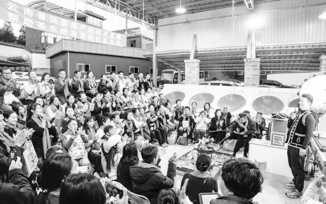近日,茶农在临沧市双江县勐库镇参与茶叶推介直播。