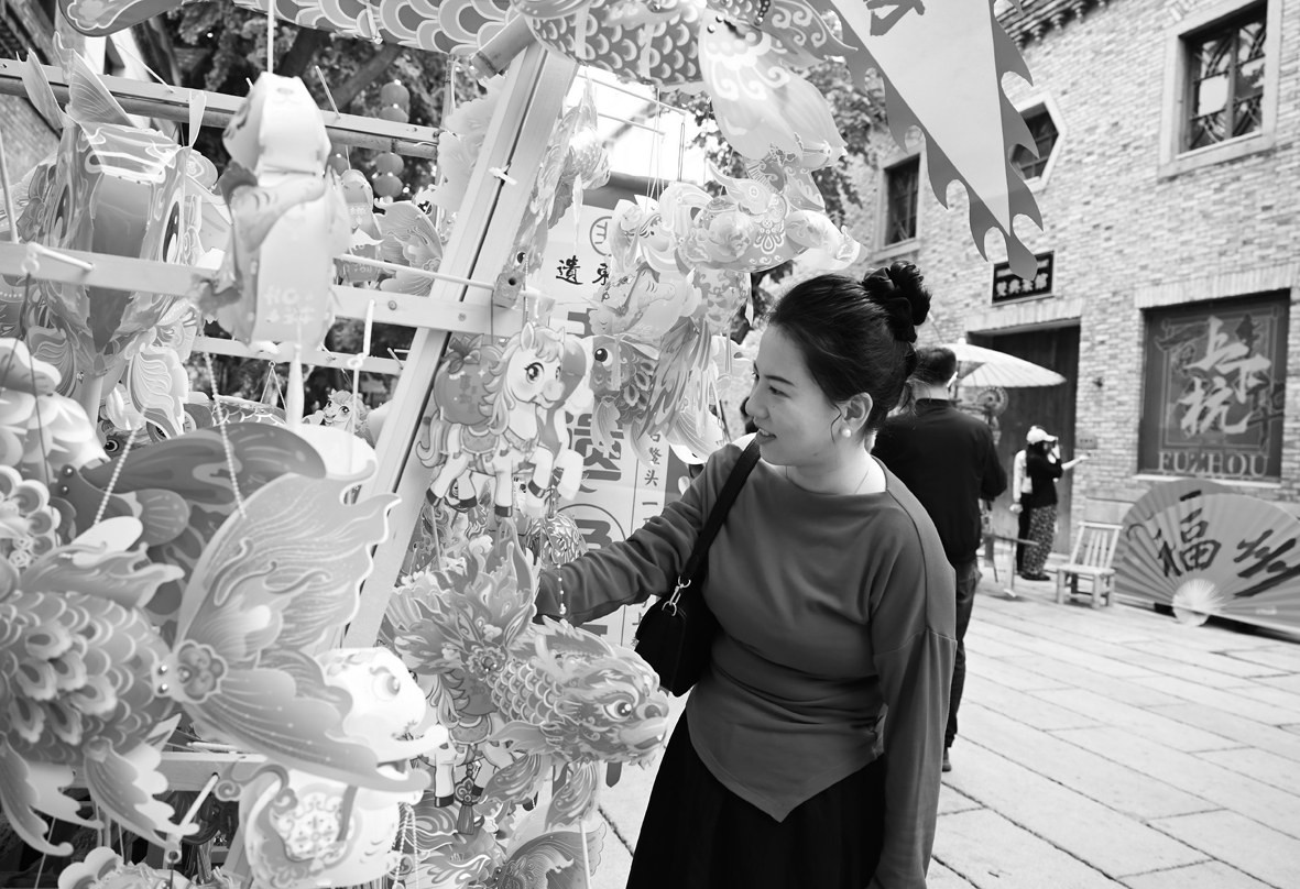 2月6日,游客在福州上下杭历史文化街区观赏花灯。