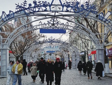 (图)哈尔滨中央大街游人如织。本报记者郭钇杉/摄