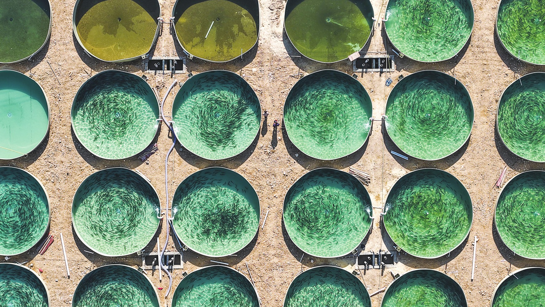 目前,岑巩基地养殖三文鱼15万余尾,年产量80至100万公斤,带动当地50余名村民就近就业,助力乡村振兴。图为贵州省岑巩县淡水渔业基地养殖场景。