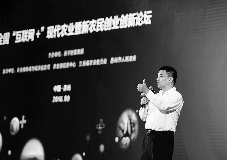 6日,全国“互联网+”现代农业暨新农民创业创新论坛在江苏省苏州市举行。图为新希望集团总裁刘永好在论坛上发言。季春鹏/摄