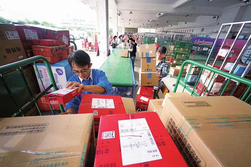日前,广西南宁市迎来“双十一”包裹高峰,各大快递公司物流仓库堆满等待处理的包裹。据南宁市邮政管理局监管科有关负责人介绍,全市14日的包裹处理量预计达400万件。图为工作人员在广西南宁市茅桥社区一家快递公司仓库忙着将分发好的包裹装车。