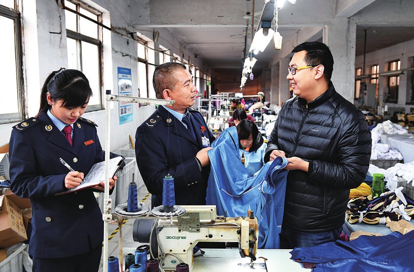 2016年以来,河北省石家庄市循环化工园区国税局针对辖区内中小企业较多,一些新建中小企业出现税务、财务知识欠缺的现象,推出“税务保姆”帮扶责任制,安排税务人员上门为企业提供税收法律法规咨询,帮助企业完善涉税财务制度。图为石家庄市循环化工园区国税局的“税务保姆”在当地一家服装加工企业了解订单进度以提供税务建议。