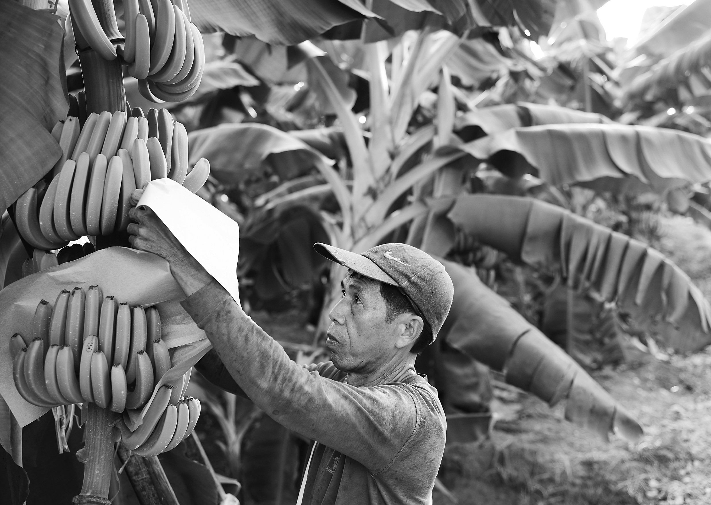 记者从广西金融部门了解到,近几年来广西金融支农力度逐步加大,目前广西已开发18个特色农产品保险。截至2016年11月底,广西农业保险实现保费收入7.1亿元,同比增长约50%,为农业生产提供风险保障总金额近360亿元;支付农业保险赔款4.6亿元,受益农户约29.8万户。图为广西龙州县上龙乡农民在对种植的香蕉进行日常管理。