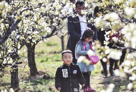 眼下,河南孟津县会盟镇“孟津梨”主产区内梨花盛开,吸引众多游客前来观赏、游玩。近年来,孟津县会盟镇因地制宜,大规模培育发展“孟津梨”,目前种植面积已突破1万亩。当地以梨为媒,形成了特色种植和休闲观光两条产业链,“孟津梨”成了农民致富奔小康的主导产业。