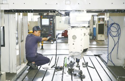图1:烟台市泰利汽车模具制造有限公司工人在操作机械。