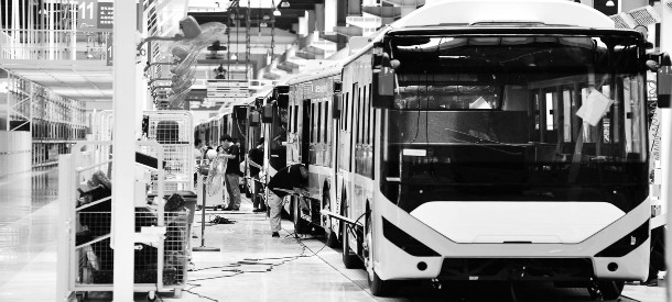 近日,广西贵港市首批30辆新能源纯电动公交车投入使用。据了解,今年广西贵港市计划投放350辆新能源纯电动公交车,逐步淘汰老旧柴油车,大力发展绿色公共交通,改善城市空气质量。图为广西贵港市一家新能源汽车企业生产车间,工人在生产线上作业。
