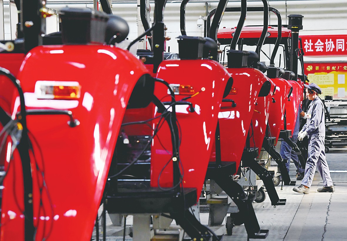 作为国家“一五”时期重点布局的老工业基地之一,洛阳曾站在河南经济发展的潮头。一段时期内,洛阳发展的步伐却慢了下来,人们甚至开始讨论洛阳为什么成了“落阳”。 近年来,洛阳积极实施创新驱动发展战略,加快构建现代创新体系,郑洛新国家自主创新示范区、中国(河南)自由贸易试验区洛阳片区的陆续获批,更为洛阳创新发展提供了新的平台和动力,洛阳正重新“升起”。图为工作人员在中国一拖集团有限公司第三装配厂的流水线上作业。