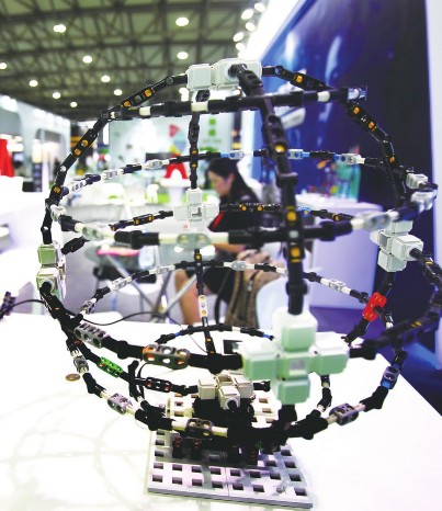 9月26日,为期三天的“2017上海国际教育装备博览会”在上海新国际博览中心开幕。400余家中外参展商展示了国际前沿的教育装备和教学环境方案,如校园数字化网络、智慧备课、录播及视讯系统、云课堂、云直播、机器人教室等,勾勒出一幅“未来课堂”和“智慧校园”的图景。图为展览展示的中小学机器人实验室的教具及装备。刘颖/摄