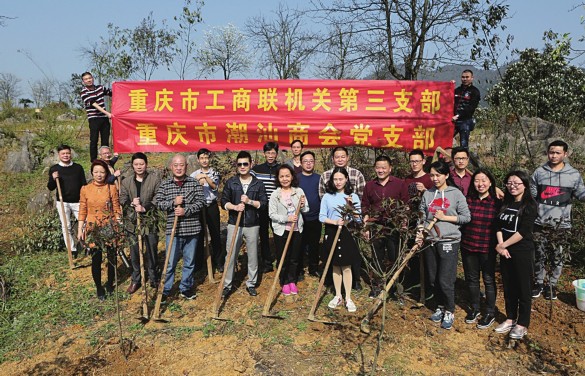 3月15日下午,重庆市工商联机关第三党支部开展“携手商会党组织共建山清水秀之地”主题党日活动,与重庆市潮汕商会党支部全体党员一同赴巴南区彩色森林义务植树。 三月的骄阳映照脸庞,党员忙碌身影遍布山岗,大家争先恐后,挖坑、扶苗、培土、浇水,气氛热火朝天,场面井然有序。两个支部的党员互帮互助通力合作,你追我赶激烈角逐,汗水流淌不止,欢声笑语不断,在不知不觉中完成了植树任务。 随后,全体党员来到彩色森林公园会议厅召开组织生活会,传达学习习近平总书记参加重庆代表团审议时的重要讲话精神和陈敏尔书记在重庆代表团专题学习贯彻习近平总书记重要讲话精神时提出的学习贯彻要求,潮汕商会党支部对党员进行民主评议。市工商联党组书记、副主席张莉在民主评议党员会上谈到:这是一次有意义的组织生活,是一次严谨的民主评议,也是一次学习提高的座谈交流。 贾克飞陈伟/摄影报道