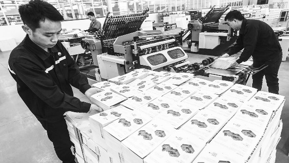 2017年以来,河北省衡水市故城县抢抓京津冀协同发展重大机遇,引导企业转型升级,高标准规划建设了北京绿色印刷产业园,引进落户北京印刷企业11家,带动就业1万余人。图为从北京迁来的优奇仕河北印刷有限公司工人在操作CP折页机进行书刊折页。