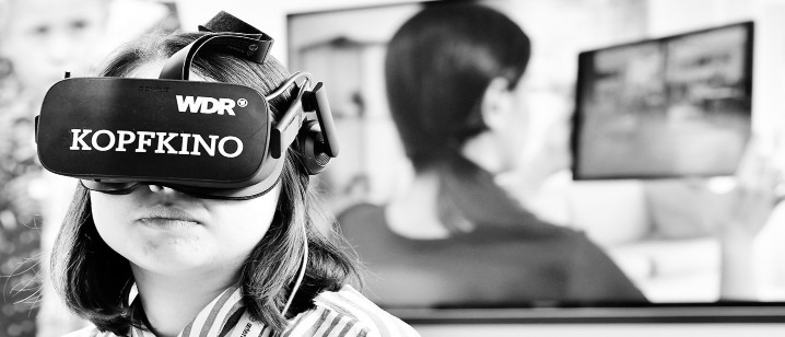 2日,为期三天的2018年德国re:publica互联网大会在柏林开幕。德国re:publica互联网大会是欧洲最重要的互联网行业会议之一,于2007年首次举办。图为一名参观者体验虚拟现实眼镜。