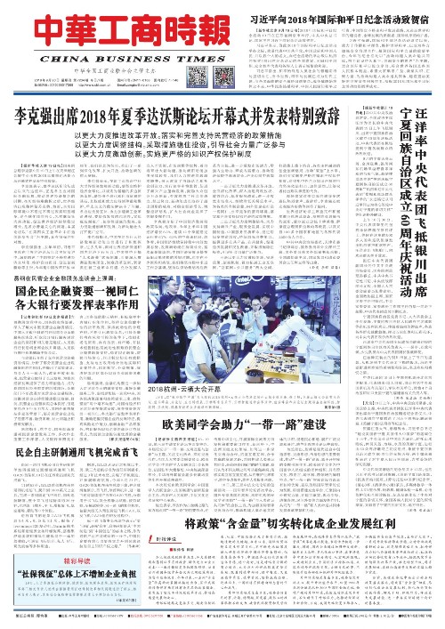 李克强出席2018年夏季达沃斯论坛开幕式并发表特别致辞