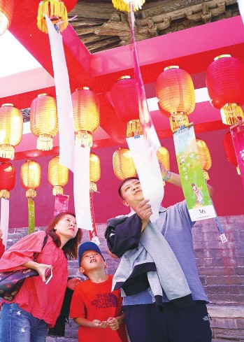 中秋假期,北京民俗博物馆推出中秋民俗展示系列文化活动,吸引不少市民和游客前来赏民俗、过中秋。图为市民和游客在北京民俗博物馆猜灯谜。