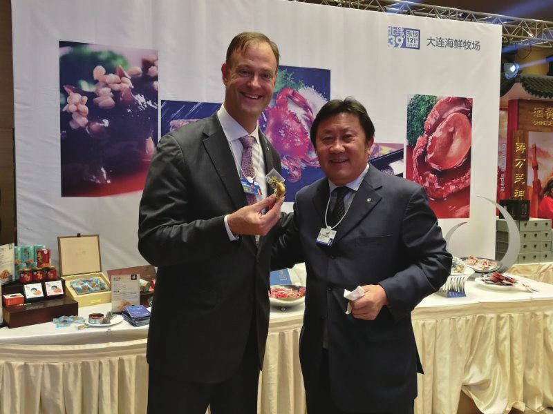 作为夏季达沃斯论坛的传统活动,9月19日,2018天津夏季达沃斯论坛举办“大连之夜”活动,通过展示城市形象、推荐当地美食、特色文艺演出等方式,与来自全球的参会嘉宾互动交流、共话未来。獐子岛海洋休闲食品作为大连海洋美食珍品予以呈现,现场还以图板、视频的形式展现海洋牧场盛产的扇贝、海参、鲍鱼、海胆、海螺、生蚝等海洋珍品。 据了解,獐子岛海洋食品早在2009年就成为大连夏季达沃斯年会指定产品,组委会看重的是獐子岛生态模式下产出的高品质产品。不仅如此,獐子岛的海洋食品还成为APEC亚太经济合作组织会议、厦门金砖五国领导人会晤会议等国际盛会的指定产品。图为世界经济论坛大中华区首席代表艾德维(左一)赞誉獐子岛海洋牧场海洋食品。曹雪/摄