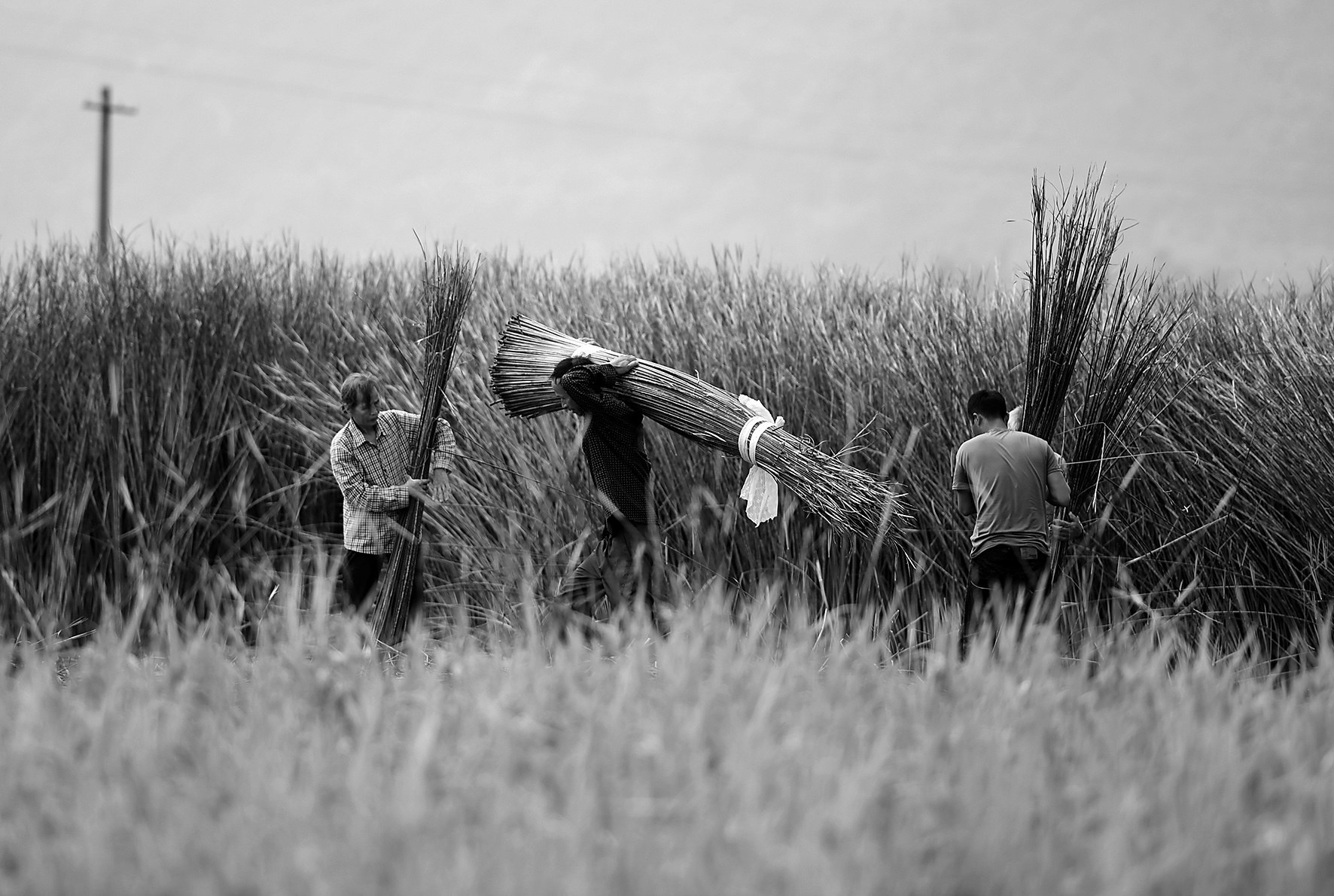 金秋时节,广西柳州市柳江区百朋镇里团村六羊屯种植的200多亩蔺草迎来丰收,农民抓住晴好天气集中收割、晾晒。据了解,六羊屯农户将晾晒后的蔺草编织成壮族草席,每亩产值近3万元,成为农民脱贫致富的主导产业。图为六羊屯村民在地里收割蔺草。