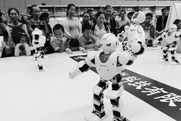 机器人、无人机、VR技术……10月26日至28日在广西南宁国际会展中心举行的2018广西工业和信息产品展示会上,代表着高科技发展方向的新兴产业吸引众多市民的目光。图为市民在广西南宁国际会展中心观看会跳舞的机器人。
