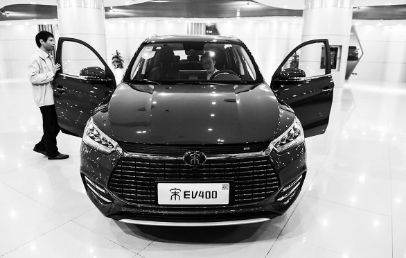 从“小米加步枪”的装备起步,到立足新能源汽车产业,再到提出开放平台新定位……23年来,在创新“基因”的催化下,比亚迪一路成长壮大、成为行业领先的巨头企业。如今,以比亚迪为代表的高新技术车企,正不断坚定信心做强实体产业,为中国经济转型升级注入“绿色能量”。图为在位于深圳的比亚迪总部,工作人员在展示新能源紧凑型SUV“宋”。