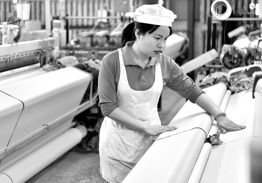 日前,工人在河池市宜州区一家丝绸生产企业的车间工作。近年来,广西河池市宜州区大力推动桑蚕产业转型升级,推动种桑养蚕、茧丝绸加工、物流销售各环节无缝衔接,使桑蚕产业成为惠民增收、乡村振兴的主导产业。周华/摄