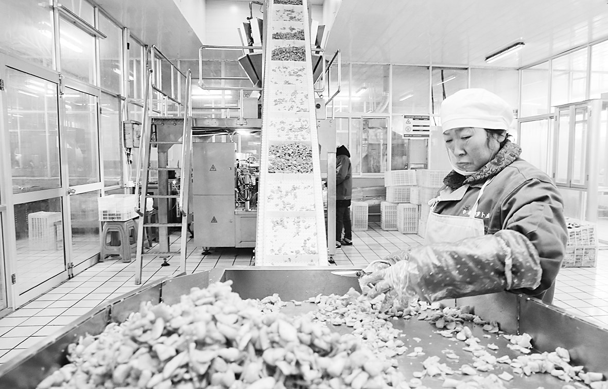 江苏如皋白萝卜素有“如皋萝卜赛雪梨”的美誉,如皋萝卜干作为江苏特产畅销国内外市场,当地的白萝卜精深加工产业也促进了农户致富增收。图为工人在江苏南通市如皋萝卜干制作技艺传承基地——春华食。许丛军/摄