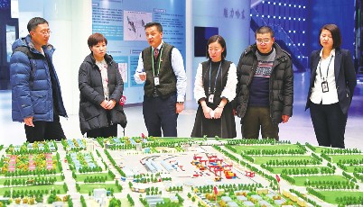 日前,在哈尔滨传化智能公路港物流有限公司,哈尔滨市“首席服务官”(左一为张智伟、左二为何云霞、右二为姜山)与该公司相关负责人一起探讨新一年企业发展规划。