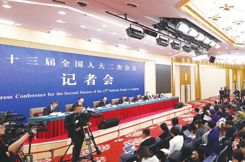 10日,十三届全国人大二次会议新闻中心举行记者会,邀请全国人大监察和司法委员会副主任委员徐显明、全国人大财政经济委员会副主任委员尹中卿、全国人大教育科学文化卫生委员会副主任委员吴恒、全国人大环境与资源保护委员会副主任委员窦树华和全国人大常委会预算工作委员会副主任朱明春就“人大监督工作”相关问题回答中外记者提问。