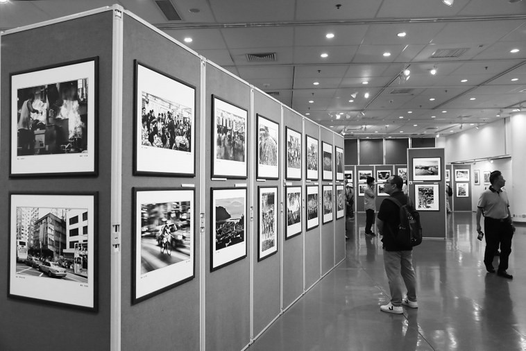 日前,“香港百年历史光影”摄影展在香港举办开幕典礼。图为展览共展出450余幅摄影佳作,以三大板块展现香港百年历史,观众在观看摄影展。