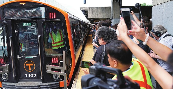 中国中车股份有限公司(中车)在美国马萨诸塞州斯普林菲尔德工厂生产的首批新型地铁车辆日前在波士顿市正式载客运营。图为在美国马萨诸塞州波士顿,媒体记者拍摄投入使用的新型地铁列车。刘杰/摄
