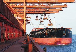 记者从河北省唐山市海洋口岸和港航管理局获悉,今年前7个月曹妃甸港区完成货物吞吐量19656万吨,同比增长6.93%。图为一艘轮船靠泊在曹妃甸港区矿石码头。