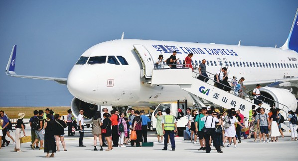 随着从重庆江北国际机场起飞的华夏航空G52685次航班顺利着陆,有着“云端机场”之称的重庆巫山机场近日正式通航。图为首批旅客乘坐华夏航空G52685次航班抵达巫山机场。