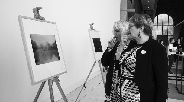 日前,“苏韵华章——江苏文化旅游嘉年华”在荷兰海牙举行系列活动,包括文化旅游推介会、美食周及摄影展等。图为在荷兰海牙,人们在欣赏摄影作品。