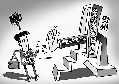 近日,贵州省发改委、贵州省高级人民法院、贵州省财政厅等九部门联合下发在公共资源交易领域对法院失信被执行人实施信用联合惩戒的通知,被法院列为失信被执行人的代理机构和投标人将被挡在公共资源交易的“大门”之外。