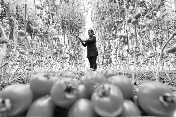 近年来,河北省滦州市积极调整农业生产结构,通过政府引导,合作社、大户带动的模式,依靠设施农业大力发展反季蔬菜、水果种植,产品畅销北京、天津等地市场,既保障了冬季市场供应,也给种植户带来良好收益。图为河北省滦州市古马镇小霍庄子村农民在大棚内采收西红柿。