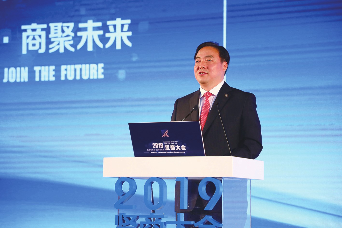 今天我们举行贤商大会,我站的位置是不一样的,我站在自贸区、新片区主战场欢迎大家,也感谢大家光临我们奉贤! 说主战场就我们自贸区新片区,总的面积800多平方公里,奉贤占了437平方公里,所以我们自贸区、新片区在土地上占有优势,占了51%。这51%为在座的各位提供了一个新的发展空间。 今天贤商大会召开,我们有三个期待。第一,打响贤商的品牌,让它成为这座城市的一张名片。第二,弘扬贤商的精神,让它成为我们这座城市,或者我们的企业家发展不竭的动力,所以我们全区无边界、开放式、高站位地去推进。第三,打响自贸区新片区的品牌,让它成为贤商发展的新空间。发展的空间有物理空间,还有文化的空间,所以我这里提供给大家的是一个物理空间。上海市委市政府,还有国务院都明确了,15年以后,再造一个浦东。现在很简单,到了某一天,奉贤将无审批。你来办公司不要审批,现在是立等可取,我们一天有300家企业在这边落户。还有,奉贤的政府构造,不要一个一个环节去做。同时,按照中国特色,“马上办”办公室。这三位一体来推进我们的服务环境,使我们奉贤成为推动企业发展创新政策的策源地。同志们,朋友们,我是不清楚在贤商精神的感召和凝聚下有多少企业家的潜能被激发,但我只知道,未来总是在想象之外的。奉贤区是充分活力的新片区,这里又是南上海的中心,所以我们的一句广告语——“离开奉贤便到世界。”因为我们本身就处在世界经济和社会发展的聚焦的点——新片区。这里又是南上海,这里应该是商机无限,无限商机,让我们一起面朝大海,面向春暖花开。我也祝愿大家从南上海走,一路朝南,一生辉煌。
