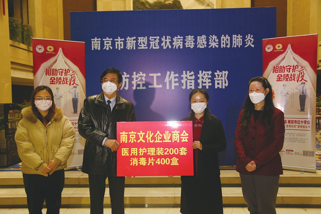 大灾面前有担当,大疫面前有大爱!同舟共济不怕难,越是艰难越向前! 新型冠状病毒感染的肺炎疫情发生以来,南京市文化企业商会众志成城,用实际行动奏响了战“疫”进行时。 捐款捐物唱响爱与担当 2月14日,南京市文化企业商会及会长单位南京银都奥美广告有限公司定向物资捐赠仪式在南京市新冠肺炎防控工作指挥部举行。文化企业商会向南京市疫情防控指挥部捐赠医用护理装200套、4000片消毒片、5000只医用口罩,价值5.44万元;银都奥美向南京市疫情防控指挥部捐赠一次性医用口罩1.5万只,价值4.55万元。 在捐赠仪式上,南京市发改委党组成员、市委军民融合办专职副主任许小卫充分肯定了南京市文化企业商会在此次疫情期间作出的贡献,尤其是会长单位银都奥美对疫情防控工作的支持。 这是疫情发生以来,南京市文化企业商会的第六次捐赠。 据介绍,在战“疫”面前,南京市文化企业商会党组织和领导班子,充分发挥先锋模范带头作用,第一时间发起募捐,各理事单位和会员单位积极响应,3天时间便捐款20余万元;商会党员向党组织缴纳特殊党费1.5万元。目前,捐款捐物仍在进行中。 第一批购买5000只口罩、2000套防护服;第二批购买1000套防护服、2万只口罩、4000片消毒片以及护目镜…… 捐赠物资分别赠送江苏省疾控中心、南京市疾控中心、江苏省人民医院、东南大学附属医院、南京市第二医院等机构…… 南京市文化企业商会前身是南京市文化产业商会,由南京地区文化类工商企业、团体和工作人士组成的非营利性的文化产业社会团体,目前拥有会员265家。 南京市文化企业商会会长、银都奥美广告有限公司董事长张丽告诉记者:“疫情发生以来,牵动着广大会员的心,大家是有钱的出钱,有力的出力,不少会员还在企业所在地进行捐赠。” 记者在采访中了解到,会员企业大美天第公司除在商会参加捐款外,还分别向辽宁、盱眙等相关地区捐款捐物;金鼎公司不仅参加商会捐款,还协助慈善机构捐款、义卖;有的企业捐款后职工还追加个人捐款…… 商会理事单位南京钟山昆歌昆艺发展中心是一家以弘扬传统文化为主旨的社会公益组织,没有经营收入,不发工资和补贴,团员都是做公益的退休人员。疫情发生后,发展中心积极响应商会发出的战“疫”捐款倡议,在团长徐立梅的带动下,先后有72人参加捐款。其中,原秦淮区人大代表马超美,坚持捐出一个月退休工资的50%,以实际行动表达战“疫”的爱心和决心。 一面是疫情一线,一面是疫情后方。哪一方都不能出现问题。受疫情影响,栖霞区八卦洲街道外沙村销往武汉的芦蒿无法发货,眼看就要烂在地里,当地菜农心急如焚。张丽获知这一消息后,自己采购5000斤,发给员工做福利,解了菜农的燃眉之急。 随着疫情的蔓延,江苏向疫区派出医疗队,南京地区也进入防疫状态,防护用品紧缺。文化企业商会积极响应南京工商联的动员令,紧急采购多批口罩、防护服,继分别赠送江苏省疾控、南京市疾控、江苏省人民医院、东南大学附属医院及南京市第二医院等机构之后,又再次向南京市新冠肺炎防控工作指挥部捐赠了护理、消毒用品。 张丽说,大疫献大爱,患难见真情。战“疫”期间涌现出许多感人事迹。有不少会员单位属于小微企业,有的企业因为疫情经营受到严重影响,可是在大疫面前义不容辞慷慨解囊,彰显着爱与担当。 主题创作吹响全民战“疫” 在疫情防控中,生动形象地科普“疫”知识,是文化企业的强项。 为此,文化企业商会号召广大会员发挥行业优势作用,积极履行广告人的社会责任,宣传疫情防控知识,确保政令畅通,弘扬正能量。众多会员企业将自己的创作激情,默默地化作了对疫情的关切之情,用自身的专业知识,将抗击疫情期间的科普知识、感人场面、标识警句转化成了一个个鲜活生动的作品,利用广播电视、报纸、户外媒体、互联网等优势资源,制作、发布公益广告,传递人间真情,弘扬社会正能量。初步估计,该批公益广告价值上百万元。 会长单位银都奥美是南京本土的4A广告公司,他们充分发挥自身优势,协助南京市慈善总会与南京市红十字会,以“相助守护,金陵战‘疫’”为主题,共同发起面向募集疫情防控款物的倡议书。公司多支专业团队加班加点,同心协力,积极投身疫情宣传,不但设计制作,还免费印刷了1.5万张主题海报,跟进多场公益活动,推动南京市防疫工作顺利地展开。 常务副会长单位江苏省声屏文化产业发展有限公司,在董事长张健的部署下,设计部门连夜创作宣传海报,在南京市区交通要道的LED大屏上播放。在得知江苏文艺工作者——中国音乐家协会会员徐晓思和作曲家张建华,专门为医护人员写下《白衣英雄赞》《守护生命的蓝天》两首曲目后,江苏省声屏文化立即组织策划部、影视部成员,商讨方案并将其制作成两个MV,共同致敬这群最美的逆行者。 商会监事长徐剑青运用自己首创的e书法创作了数十幅抗疫主题的作品,在微信和网络上被广为传播;常务副会长、鼎艺国际董事长杜俊应邀参加了工信部组织的“我相信”百人宣传活动;副会长单位永达广告运用沪宁高速公路沿线和高铁站点的广告资源投放抗疫公益宣传广告…… 理事单位七色花传媒嘉铭之声俱乐部音乐诵读创始人嘉铭连夜赶制抗疫诗朗诵作品《2020我们坚信武汉》向奋战在一线的医务工作者致敬;钟山昆歌中心赶排