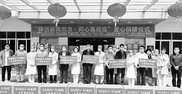 广东省汕尾市工商联近日在市人民医院举行“你出征我出力·同心赢战‘疫’”爱心捐赠仪式,汕尾市工商联主席黄琨和市委统战部副部长、市工商联党组书记陈志胜,市红十字会党组书记、常务副会长黎学斌及汕尾市首批援助湖北医疗队18名队员的家属代表参加了活动。活动由广东省永道生态集团有限公司捐赠18万元,慰问汕尾市援助湖北医疗队18名队员;汕尾市工商联和汕尾市美顿食品有限公司等共捐赠价值约12万元的生活物资。
