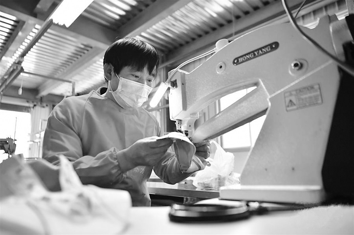 | 			    日前,黄章友在社区工厂缝制运动鞋。黄章友是陕西省安康市宁陕县城关镇八亩村人,幼时手指受伤,劳动能力受限。2015年,黄章友被认定为贫困户。2016年,在政策支持下,黄章友申请了扶贫贷款,开始发展食用菌、魔芋种植和蜂蜜产业,当年实现脱贫,被宁陕县评为脱贫攻坚自强标兵。2017年,脱贫后的黄章友迎来了新生活。一家五口从地处深山、交通不便的土坯房,搬入新建的移民安置小区。2018年,他和妻子通过招聘,进入安置小区的社区工厂制鞋。因工作能力突出,2019年黄章友被任命为社区工厂车间主任。2020年2月,宁陕县退出贫困县序列,实现“摘帽”。黄章友说:“有党的好政策在,只要肯努力,好日子还在后面!”