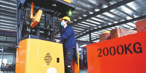 近日,安徽省肥西县在做好疫情防控的同时,及时了解当地企业生产经营状况,解决企业运输、资金、用工、防护等复工复产中的难题,助推企业全面复工复产。截至目前,肥西县规模以上企业全部复工复产。4月6日,在肥西县花岗镇的一家智能叉车生产企业内,工人在调试智能叉车。