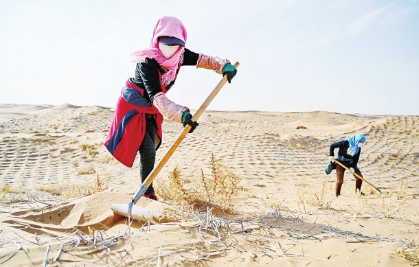 腾格里沙漠治沙忙