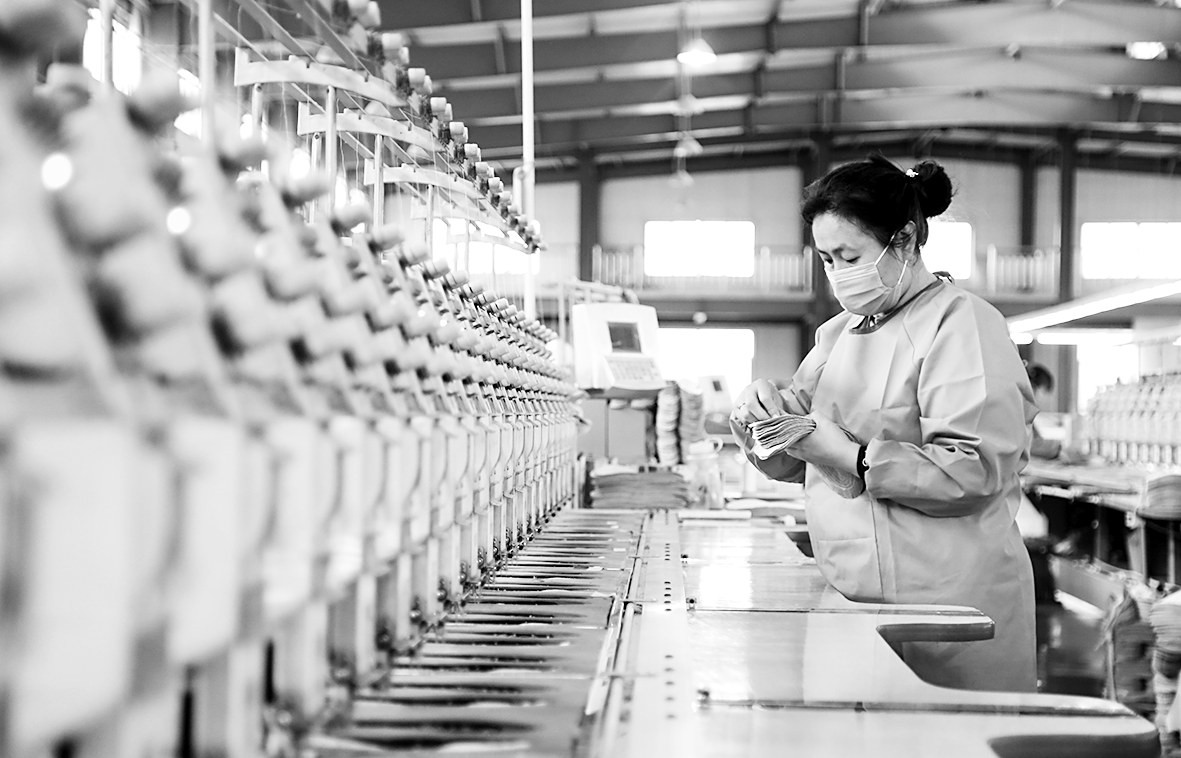 近年来,河北省广宗县通过建立32家“扶贫微工厂”,帮助农民就地就近就业。目前,该县“扶贫微工厂”涉及自行车、纺织、服装等行业,可带动2000余名农民增收。图为工人在广宗县核桃园镇一家“扶贫微工厂”的流水线上作业。