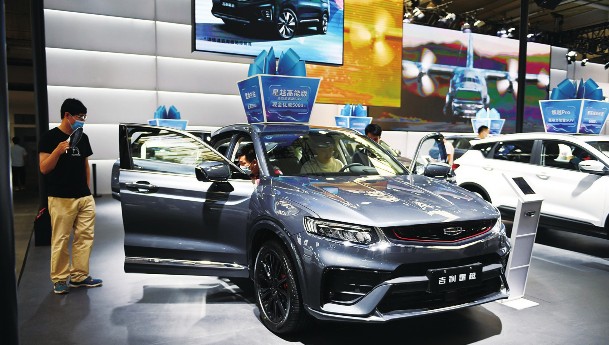 近日,为期10天的第十七届中国(长春)国际汽车博览会落下帷幕。据统计,展会期间累计销售车辆51852台,累计交易额103亿元。图为在第十七届中国(长春)国际汽车博览会现场,参观者在吉利展台参观。
