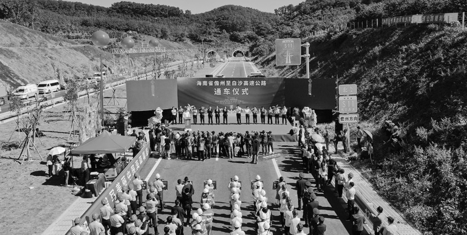 12月29日,海南儋州市到白沙黎族自治县的高速公路正式通车。儋白高速全长36公里,将白沙到儋州的车程由原来的1小时缩短至20分钟。随着儋白高速公路通车和年底三亚海棠湾至保亭黎族苗族自治县高速公路主线通车,海南将实现“县县通高速”。图为当日拍摄的海南儋白高速通车仪式现场。