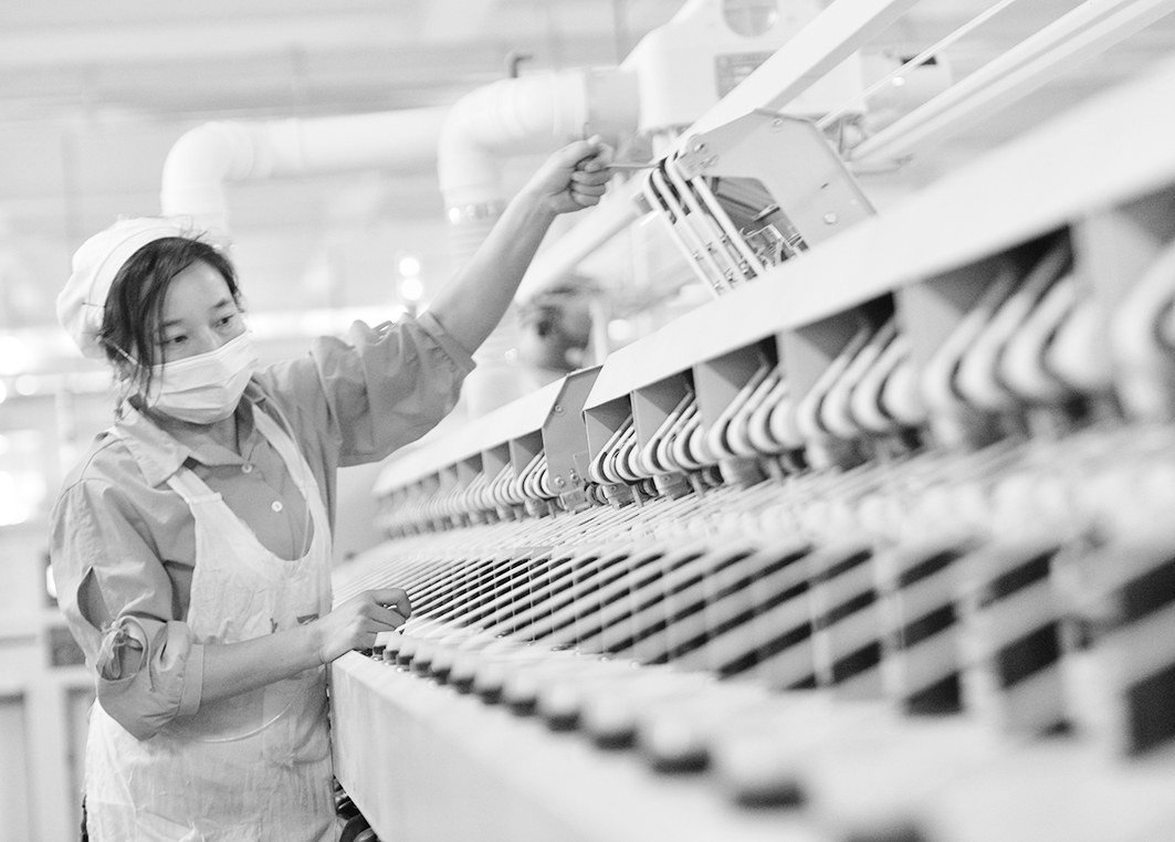 近年来,甘肃省临夏回族自治州东乡族自治县在乡镇建立针织产品、服装鞋帽、食品加工等扶贫车间,通过“龙头企业+扶贫车间+农户”的模式,帮助群众在家门口就业,促进群众增收致富。图为工人在东乡族自治县达板镇一纺织扶贫车间内作业。