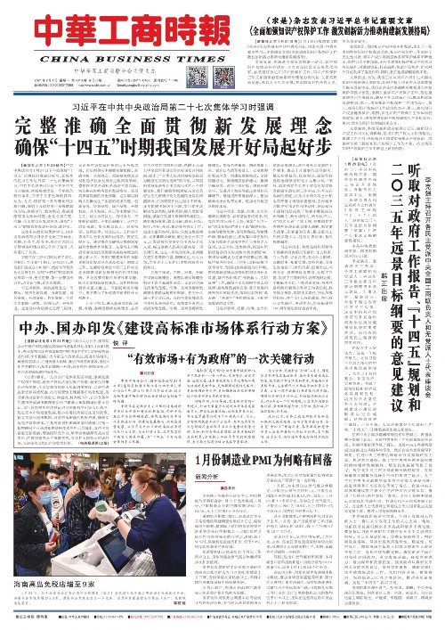 完整准确全面贯彻新发展理念 确保“十四五”时期我国发展开好局起好步